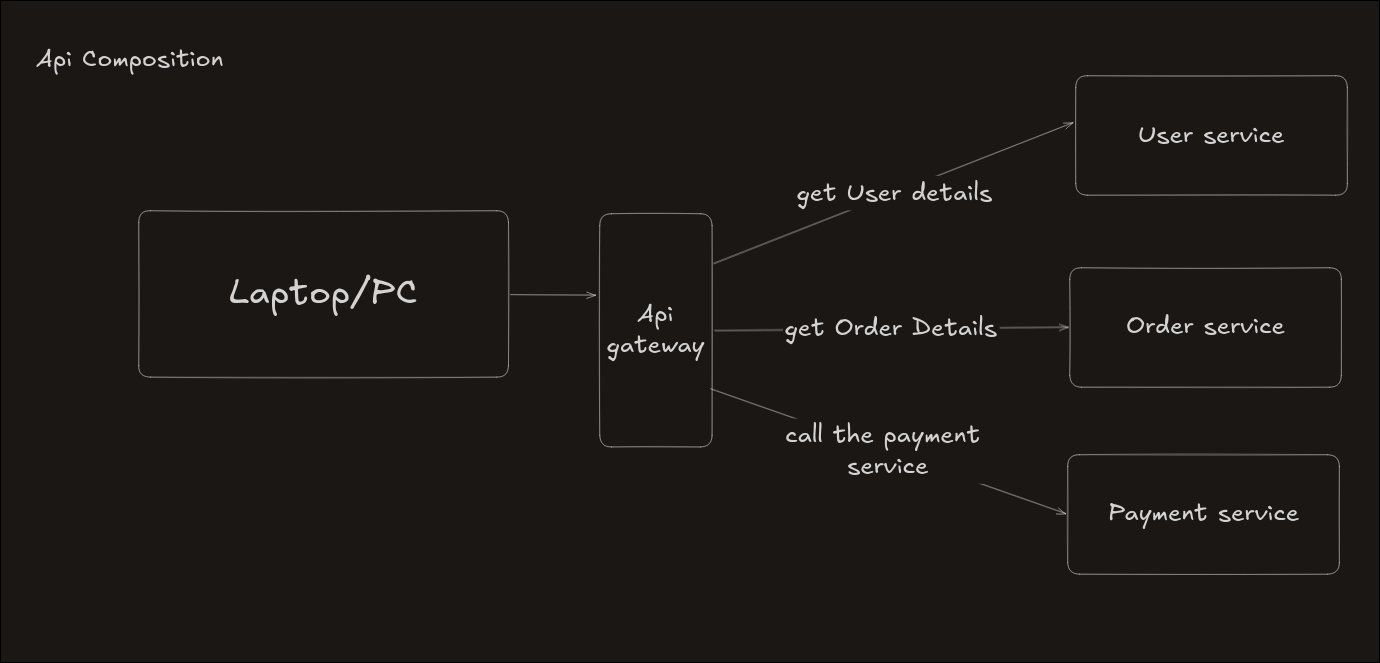 Without API composition, the client application would need to contact all these services separately, which makes things complicated.