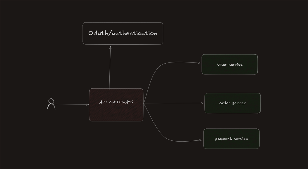 Before sending a request to any service, the gateway first checks whether the user is allowed to access the system. It usually does this by contacting an Authentication Service.