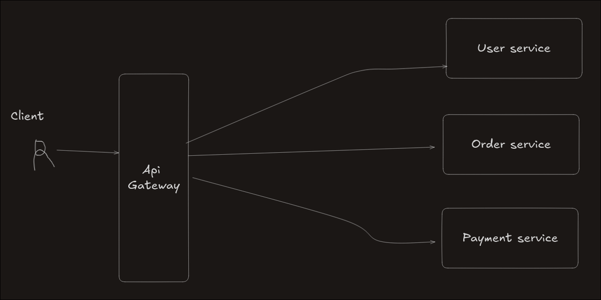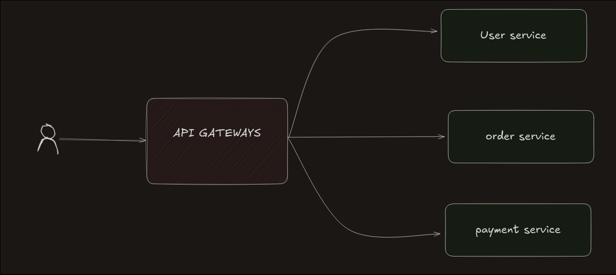 When a user sends a request to an application, the request first goes to the API Gateway. The gateway understands what the user wants and then sends the request to the correct service.