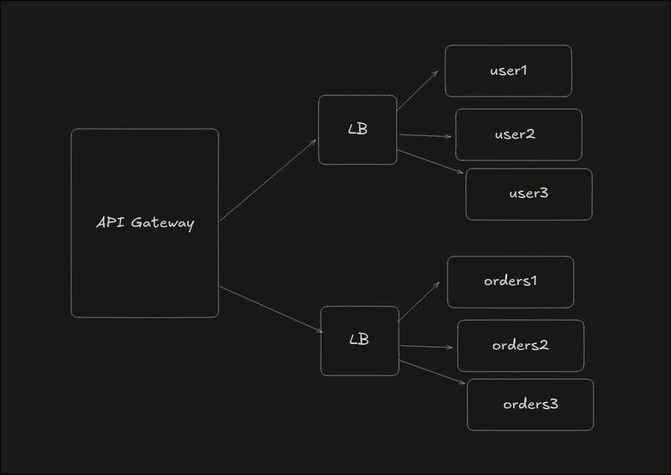 Client Request → API Gateway API Gateway → identifies service Load Balancer → chooses one server Request → sent to that server