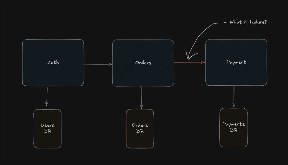 In a monolith, if something fails, you roll back the database transaction.
